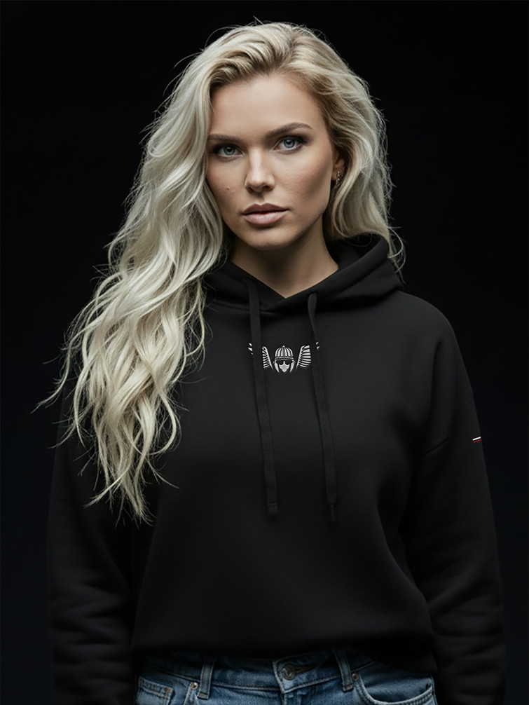 CZARNA BLUZA Z KAPTUREM DAMSKA - USARZ