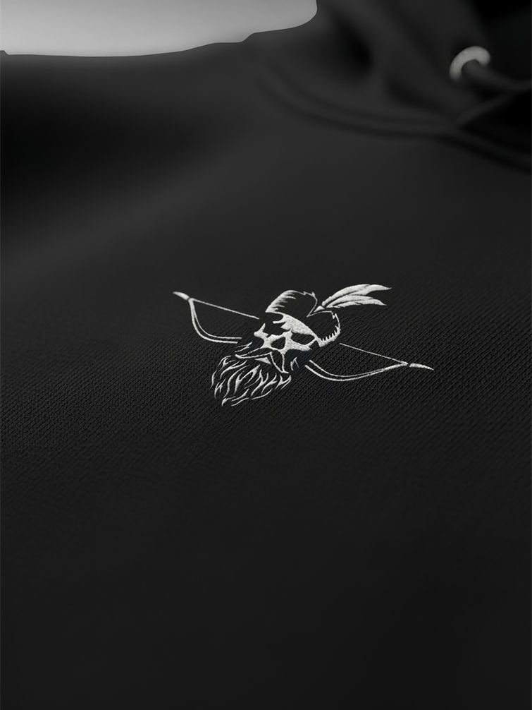 Centralnym punktem bluzy jest pieczołowicie wykonany haft: czaszka w szlacheckiej czapce, naznaczona bliznami – symbolami bitewnego doświadczenia. Za nią widnieje łuk refleksyjny przypominający o szybkości, precyzji i skuteczności, z jakiej słynęli nieuchwytni Lisowczycy.